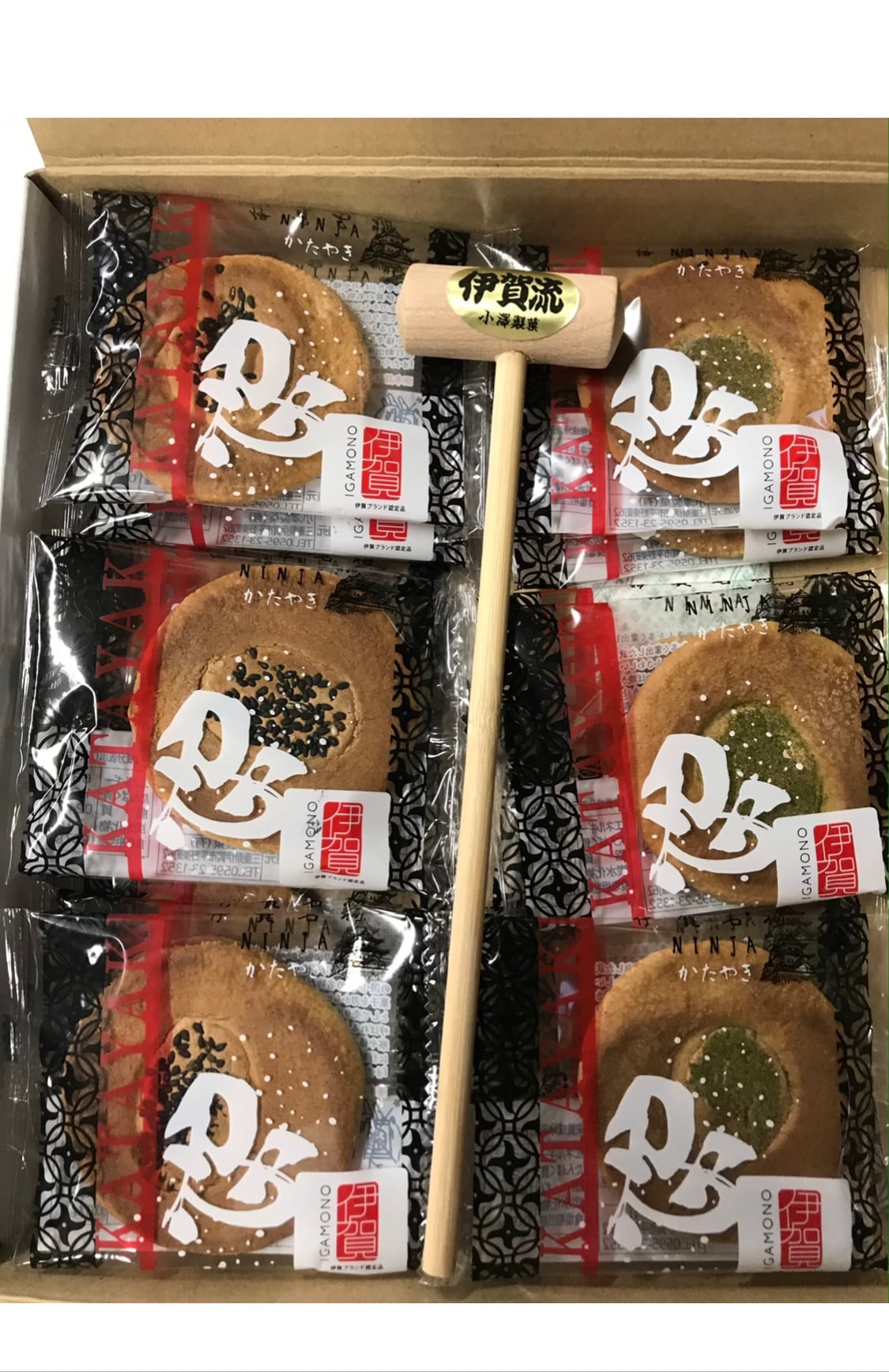 伊賀名物かた焼き36枚入り、木づち付きになります。